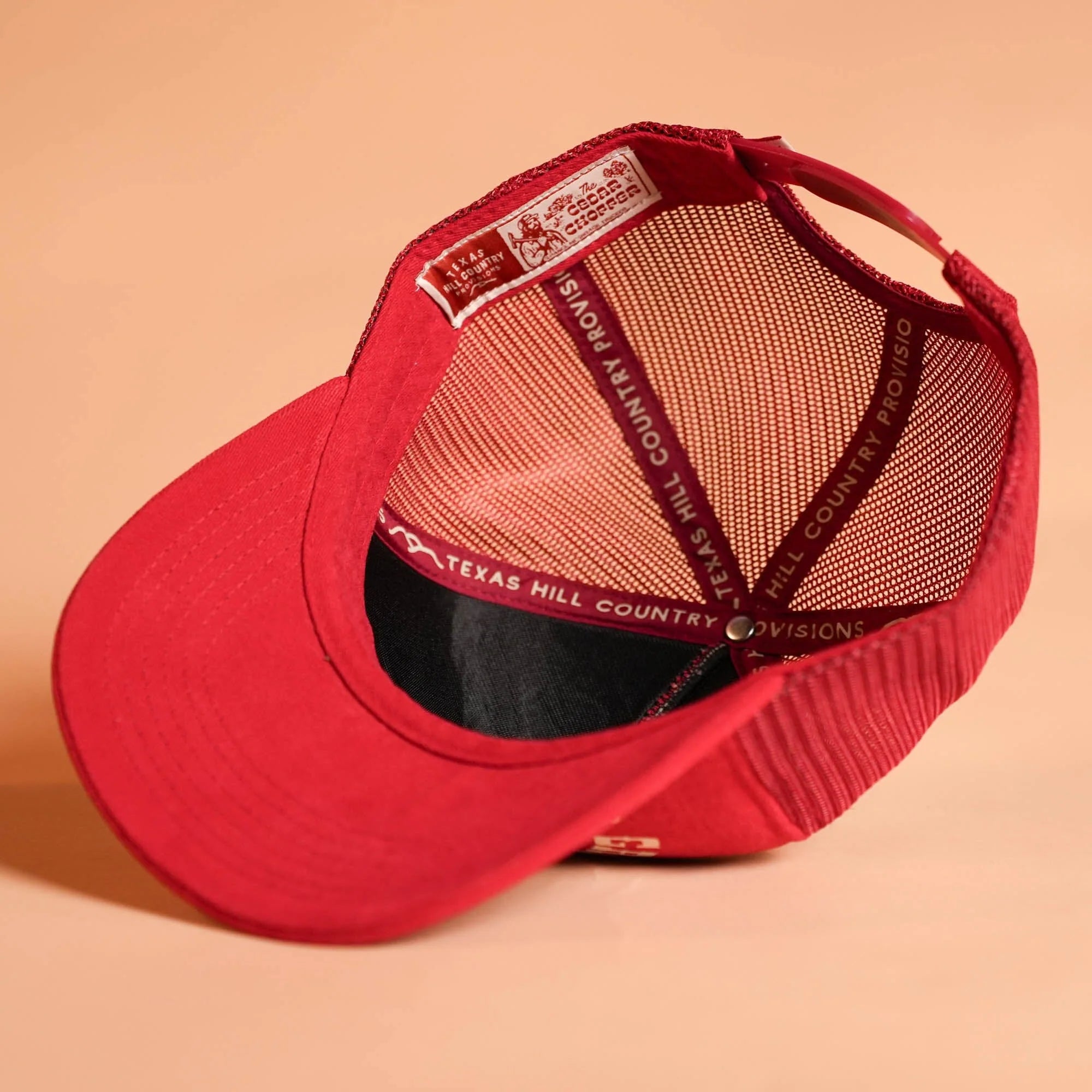 Front panel uses a premium wide rib cotton twill fabric with a firm foam backing. Back panels are made from a firm poly mesh.